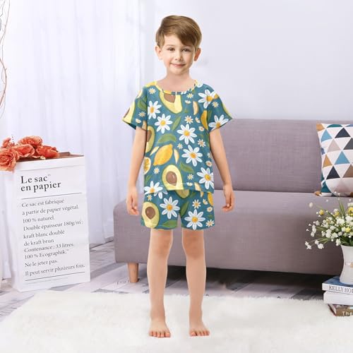 ALAZA Lemon Daisy Flower Avocado Pajamas Short Sleeve 2 Piece Sleepwear Top and Bottom Pajama Set Unisex 3