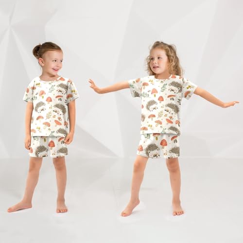ALAZA Hipster Hedgehog Mushroom Pajamas Short Sleeve 2 Piece Sleepwear Top and Bottom Pajama Set Unisex 1