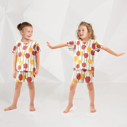 ALAZA Red Yellow Tulip Flower Art Pajamas Short Sleeve 2 Piece Sleepwear Top and Bottom Pajama Set Unisex 2