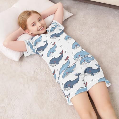 ALAZA Cute Whale Cartoon White Pajamas Satin Pajama Set Short Sleeve Button Down Sleepwear 1