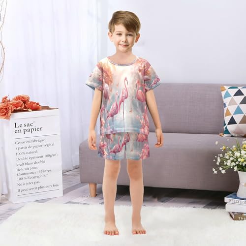 senya Short Sleeve Pajamas Sets Summer Cotton Sleepwear Cartoon Of Pink Flamingos 3