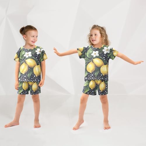 ALAZA Vintage Lemons Flowers Polka Dots Pajama Set Short Sleeve Sleepwear Soft Lounge Nightwear 1