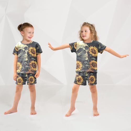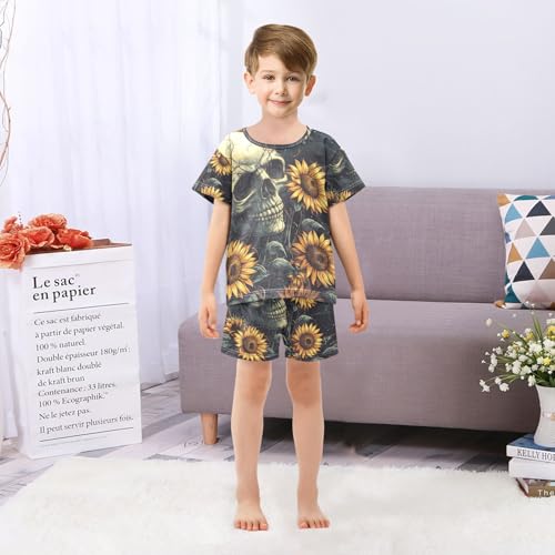 ALAZA Skull and Flowers at Night Pajama Set Short Sleeve Sleepwear Soft Lounge Nightwear 5