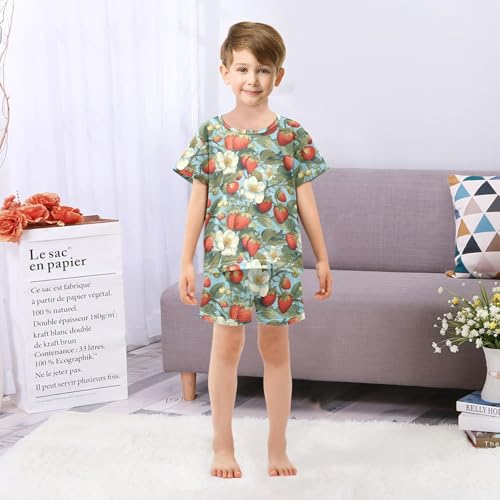 ALAZA Strawberry and White Flower Pajama Set Short Sleeve Sleepwear Soft Lounge Nightwear 1
