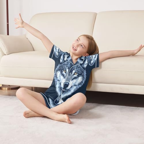 ALAZA Cute Wolf Animal Head Satin Pajamas Set Short Sleeve Button Down Sleepwear Summer Pjs 2 Piece 6