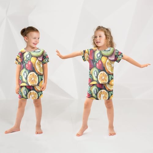 Pajama Sets Short Sleeve Colorful Fruit Pattern Soft Cotton Summer Sleepwear 2 Piece PJS Size 5-14T 5