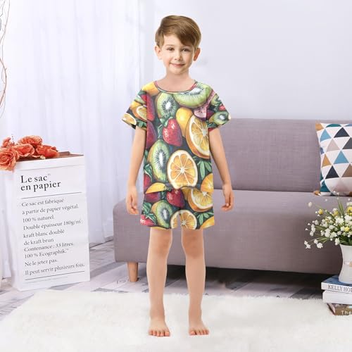 Pajama Sets Short Sleeve Colorful Fruit Pattern Soft Cotton Summer Sleepwear 2 Piece PJS Size 5-14T 6