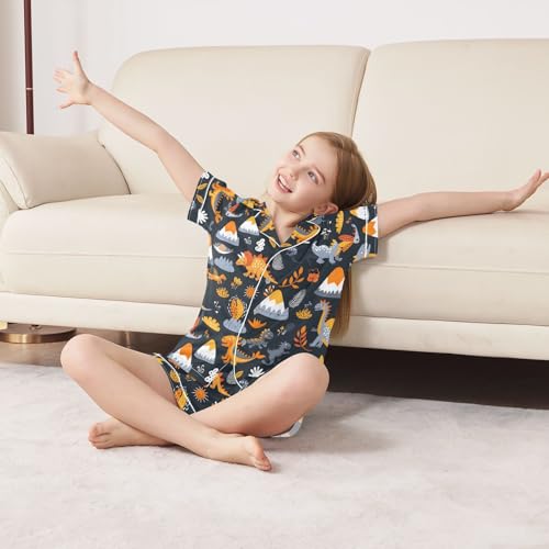 More information about ALAZA Cute Dinosaur Mountain Satin Pajamas Set Short Sleeve Button Down Sleepwear Summer Pjs 2 Piece