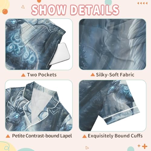 More information about ALAZA White Deer Tree Leaf Satin Pajamas Set Short Sleeve Button Down Sleepwear Summer Pjs 2 Piece