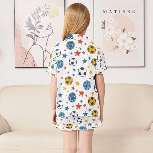 senya Color Soccer Stars Satin Summer Pajama Sets Silk Short Sleeve Button Down Sleepwear 1