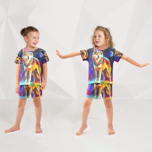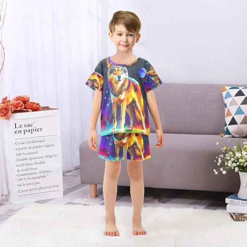 ALAZA Funny Wolf Moon Pajamas Set Short Sleeve Cotton Sleepwear Summer Pjs 2 Piece 5-14Y 5