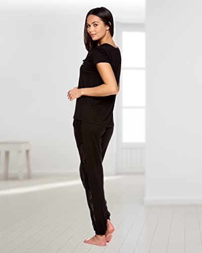 HOT ! bebe Womens Pajama Set, Short Sleeve Shirt with Lace Jogger PJ Pants Lounge Sets for Women