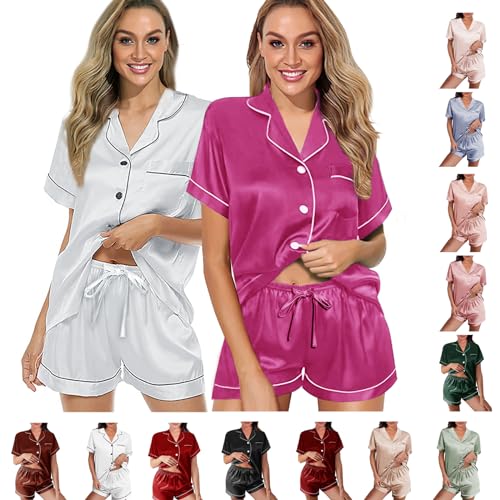 More information about 2 Pack: Silk Pajamas XS-2XL Womens Satin Pajama Set Bride Soft Pj Lounge Sets Pjs Shorts Set Short Sleepwear