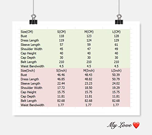 • THIS ROBE SIZE FITS: S--Length: 119cm/46.85"--Bust: 118cm/46.47"--Sleeve length: 57cm/22.44";M--Length: 124cm/48.82"--Bust: 123cm/48.43"--Sleeve length: 59cm/23.23";L--Length: 129cm/50.79"--Bust: 128cm/50.39"--Sleeve length: 61cm/24.02".It is loose for most lady to enjoy the costume cosplay party game with family on sofa home and yard!To keep your robe looking just as cute as the day it arrived, we recommend you machine wash it cold, and tumble dry low. Do not bleach or iron.