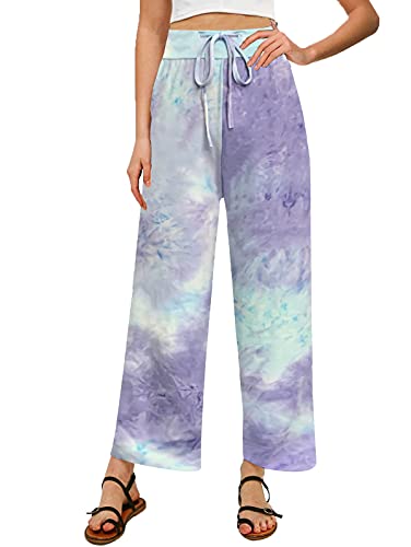HOT ! ccko Women's Comfy Casual Stretch Pajama Pants Tie Dye Drawstring Palazzo Lounge Pants Wide Leg for All Seasons