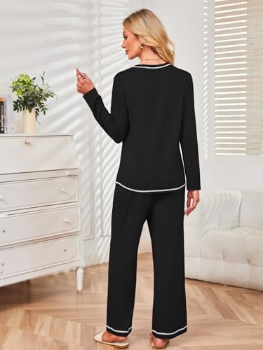 Besshopie Womens Pajamas Sets 2 Piece PJS Crewneck Long Sleeve Sleepwear Comfy Pants Lounge Set with Pockets 1