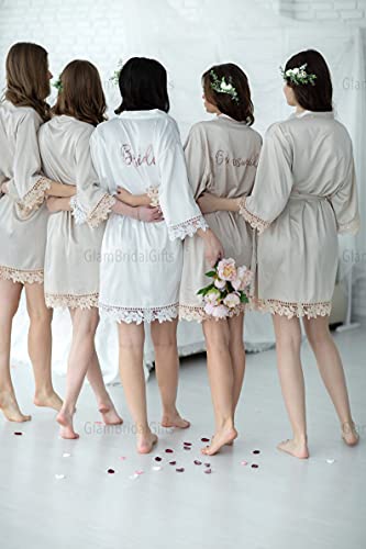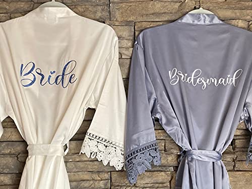 More information about Personalized Lace Robe For Women Short Getting Ready Robe with Vinyl Matte Satin Kimono Robes Customized Bridesmaid and Bride Robes Lace Bridal Robes Bridesmaids Party