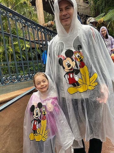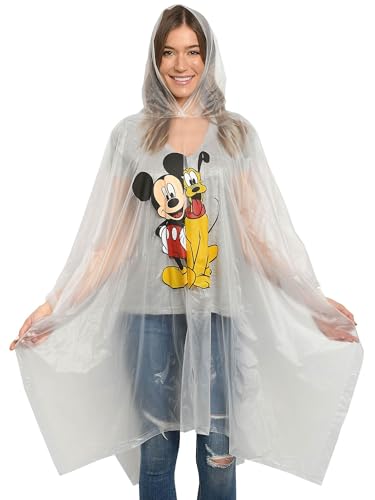 • OFFICIALLY LICENSED DISNEY ADULT RAIN PONCHO – These officially licensed Disney Mickey Mouse and Pluto rain ponchos are made from a vinyl material and are sure to provide cover from the rain. Don't let the weather get in the way of your activities! Also great for avoiding getting drenched on certain water rides!
