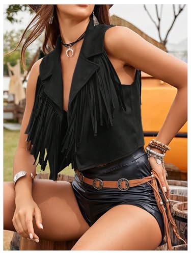 Women's Tassel Vest 70s Hippie Faux Jacket Open Front Fringe Sleeveless Crop Vest Cowgirl Outfit 6