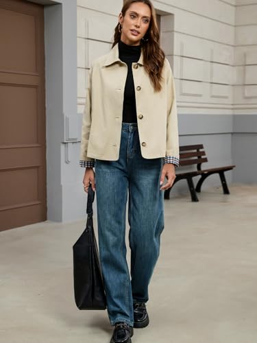 • FEATURE: In timeless khaki, this crop trench jacket with a relaxed loose fit and flattering short length offers retro flair and modern ease. Lightweight yet refined, this short trench coat elevates your outfit while providing everyday versatility