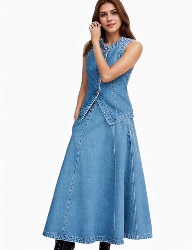• Stylish & Functional Design: Featuring a button-down closure, round neckline, sleeveless, and front slit, this sleeveless denim waistcoat offers a regular fit that flatters every body type. The classic design highlights your waistline, making it a timeless piece for your wardrobe