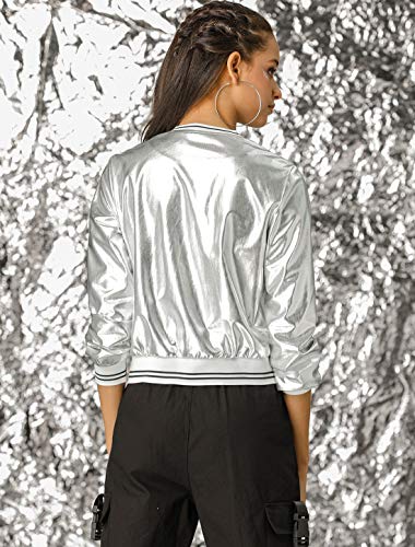 HOT ! Allegra K Women's St. Patrick's Day Sparkly Holographic Lightweight 90S Halloween Shiny Metallic Bomber Jacket