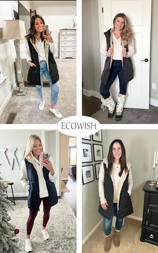 HOT ! ECOWISH Women Long Puffer Vest: Fall Zip up Reversible Fleece Jacket 2025 Winter Warm Sleeveless Hooded Coat with Pockets