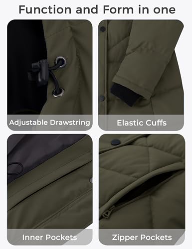• Made for Women - The waterproof women's coat boast 3 pockets that keep essentials like phones or passports within reach. An invisible drawstring of the winter jacket flatters your figure and lets you adjust your silhouette as you please.
