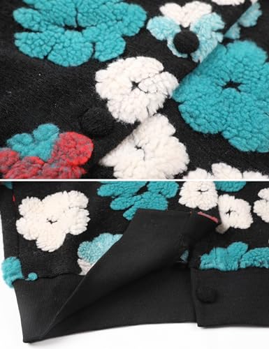 Aimiray Women's Cropped Floral Print Jacket Long Sleeve Fleece Warm Bomber Jacket Lightweight Button Varsity Coats 5