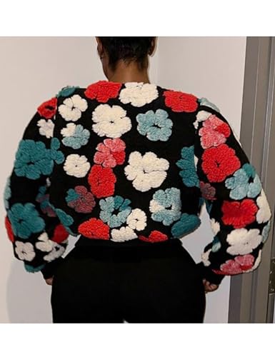 • Feature: Women's winter cropped bomber jacket, floral print design,crew neck,puff long sleeve,ribbed knit cuffs and hem, button down closure,cropped length,comfortable and soft cardigan sweater coat