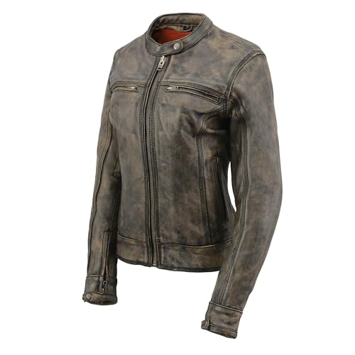 Milwaukee Leather Ladies Brown Distressed Scooter Jacket with Venting MLL2550 1