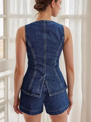 Denim Sets for Women 2 Piece Waistcoat Old Money Button Down Vest and Shorts Y2k Blazer Shorts Slim Fit Set 3