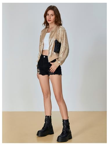 HOT ! SOLY HUX Women's Metallic Jacket Zip Up Long Sleeve Lightweight Outerwear Bomber Jackets