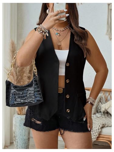 HOT ! GORGLITTER Women's Plus Size Sleeveless Blazer Vest Tops Button Down Deep V Neck Open Front Blazer Jacket Office Work Trendy