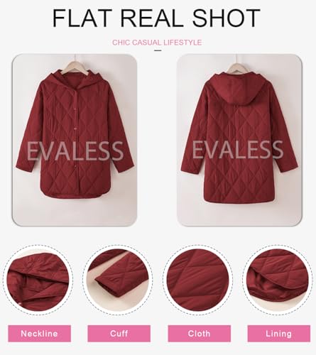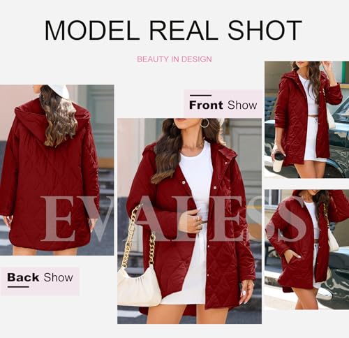 HOT ! EVALESS Winter Outfits for Women Diamond Quilted Jackets Trendy 2025 Fall Long Sleeve Coat Hooded Button Down Puffer Jacket Solid Shacket Jacket Clothing for Women Dressy Casual, Red Medium