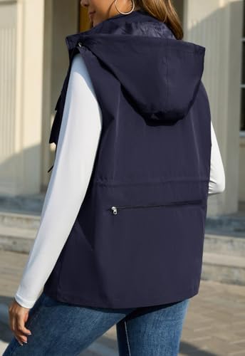 PESION Womens Packable Military Utility Vests Outerwear Waterproof Windbreaker Jacket Cargo Vest with Removable Hood 4