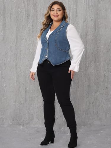 Agnes Orinda Plus Size Denim Vest for Women Lapel Sleeveless Casual Waistcoat Jean Vest Jacket 6