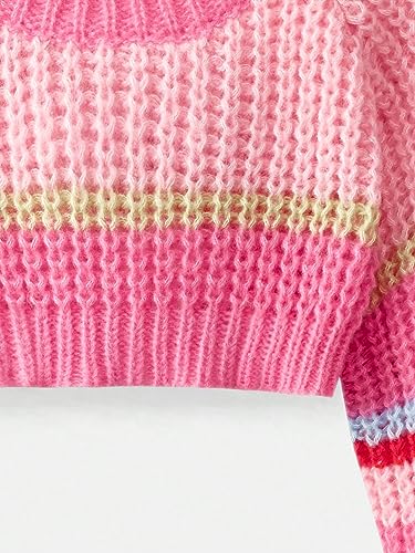 WDIRARA Girl's Striped Colorblock Round Neck Long Sleeve Crop Sweater Knit Pullovers 5