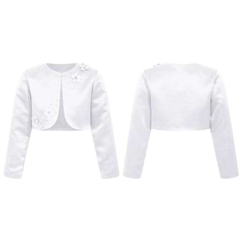 JEYPINMI Kids Girls Long Sleeve Cardigan Jacket Satin Open Front Cropped Bolero Shrugs Dress Shawl Tops 4