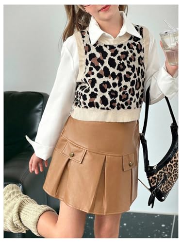 WDIRARA Girl's Leopard Sweater Vests Crew Neck Sleeveless Knit Tank Tops 5