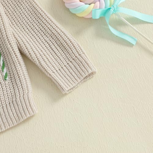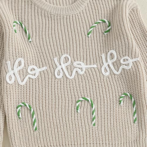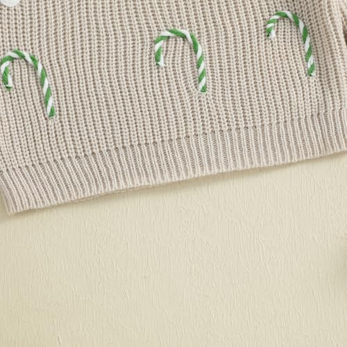 Toddler Girl Boy Knit Sweater Letter Candy Cane Embroidery Long Sleeve Pullover Kids Crew Neck Chunky Knitwear 4