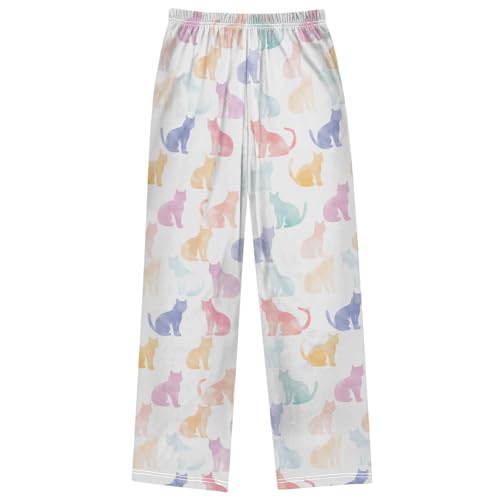 Boy's Pants Pastel Watercolor Cat Jogger Pants Elastic Waist Long Bottoms Trousers with Pockets 6-14 Years 6