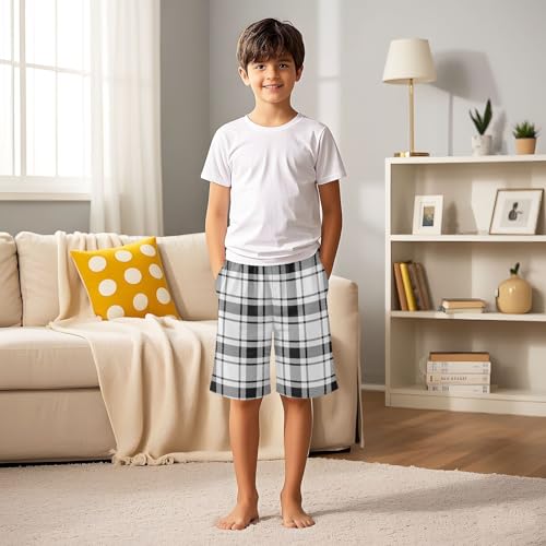 GuoChe Plaid Black White Unisex Pull-on Shorts Pajamas with Pockets Loose Fit Kid Sleepwear 4