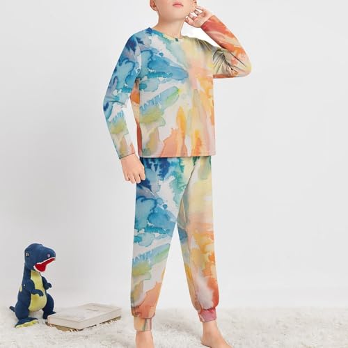 Watercolor Rainbow Tie DyeBoys Casual Comfort Pajamas, Long Sleeve Pajama Set110CM 1