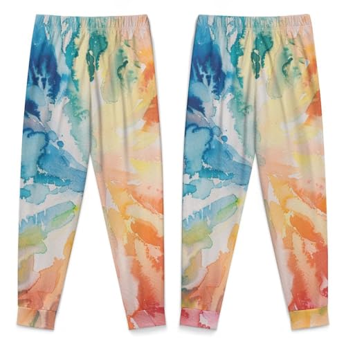 Watercolor Rainbow Tie DyeBoys Casual Comfort Pajamas, Long Sleeve Pajama Set110CM 4