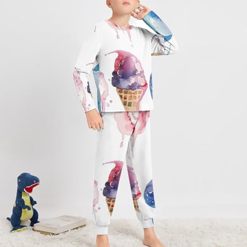 Watercolor Ice Cream in Waffle ConesBoys Casual Comfort Pajamas, Long Sleeve Pajama Set130CM 1