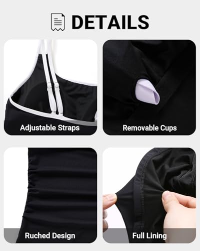 • Women Tankini Swimsuits 2 Piece: The black and white tankini bathing suit features a flattering scoop neckline, removable cups, and adjustable shoulder straps for added support and a customizable fit.