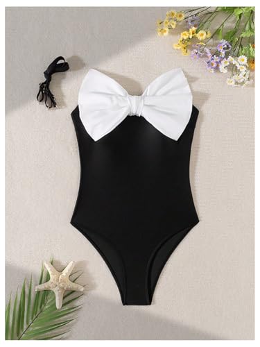WDIRARA Women's Bowknot Strapless One Piece Swimsuit Colorblock Bandeau Bathing Suit with Removable Strap 1