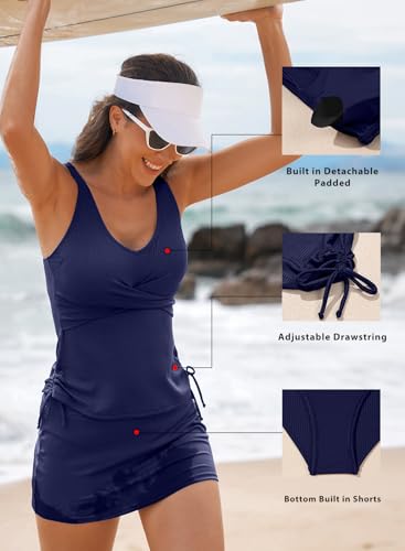 • Ribbed Material: Made from soft ribbed fabric, 90% Polyester+10% Elastane,tankini bathing suit is stretchy, breathable, and quick dry. The ribbed material adds texture and style to the swimsuit while ensuring durability and long-lasting wear
