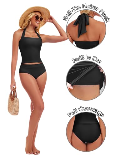 Halter Tankini Swimsuits for Women Tummy Control - Two Piece Bathing Suit Slimming Tankini Sets Bandeau Bikini 2